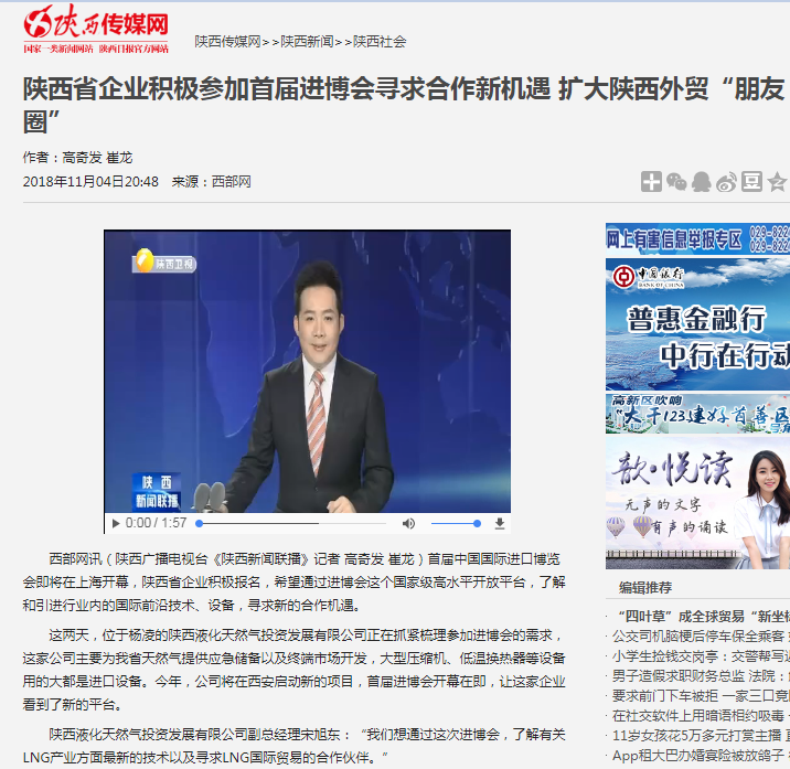 近日,西部网、华商报、三秦都市报、陕西广播电视台等新闻媒体分别对液化天然气公司参加首届进博会进行了报道。西部网11月1日报道首届中国国际进口博览会 陕西已经准备好了!西部网讯(记者 李媛)陕西液化天然…