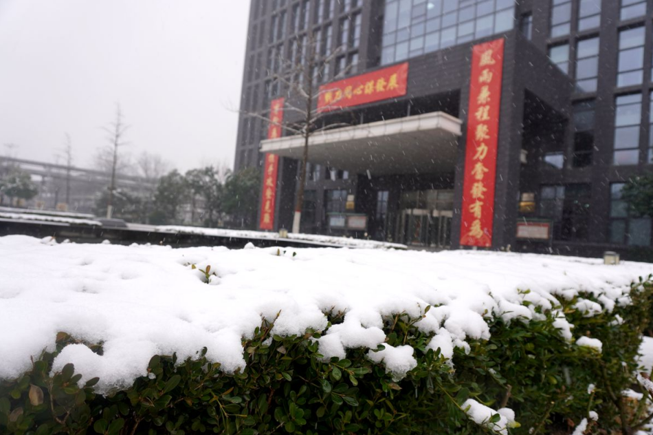 下~雪~啦~今冬第一场雪如期而至看——雪花漫过办公室的窗沿落在厂区的每一个角落缀满巡检路上的枝梢银装素裹的厂房白雪轻覆的办公楼小径