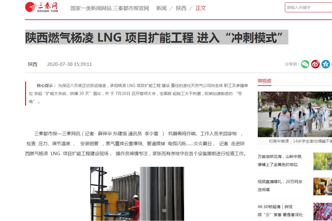 7月30日,三秦都市报-三秦网对陕西燃气杨凌 LNG 项目扩能工程进入冲刺模式进行报道,现摘录如下:三秦都市报—三秦网讯(记者 薛保华