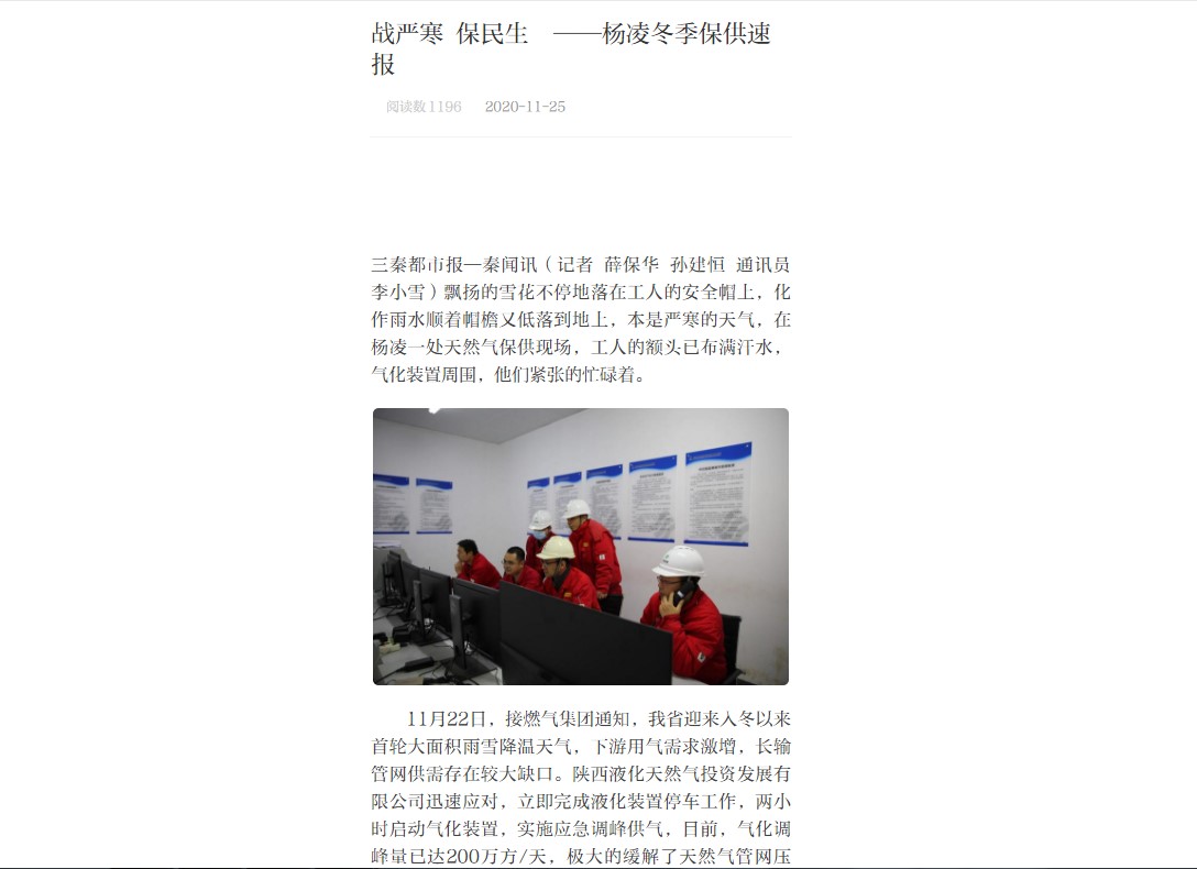 11月25日,三秦都市报-秦网对液化天然气公司战严寒 保民生进行报道,现摘录如下:三秦都市报—秦闻讯(记者 薛保华 孙建恒 通讯员 李
