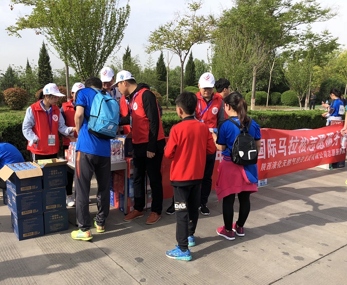 4月15日,液化天然气公司团委组织青年志愿者参加2018年杨凌农科城国际马拉松赛志愿服务活动。