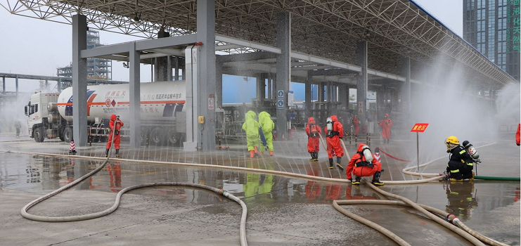 演练模拟杨凌LNG工厂充装站卸车区发现火情,公司消防队在杨凌消防支队的指挥下,积极配合,迅速响应,及时控制险情,演练过程紧张有序,各环节严谨规范,各小组配合密切,圆满完成了演练计划,达到了预期效果。
