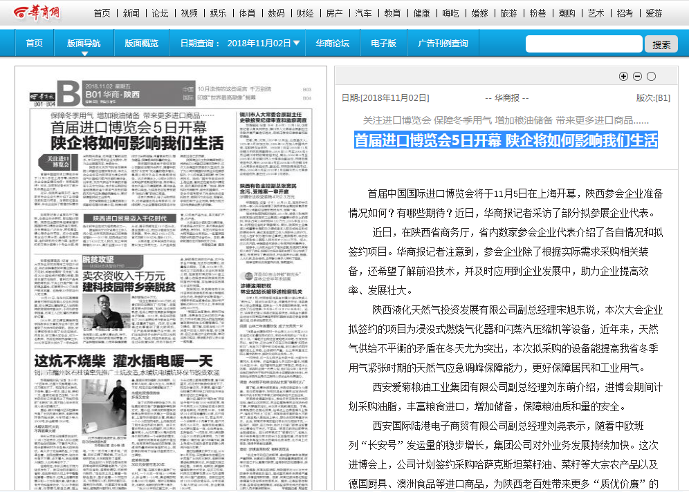华商报11月2日B1版报道首届进口博览会5日开幕 陕企将如何影响我们生活