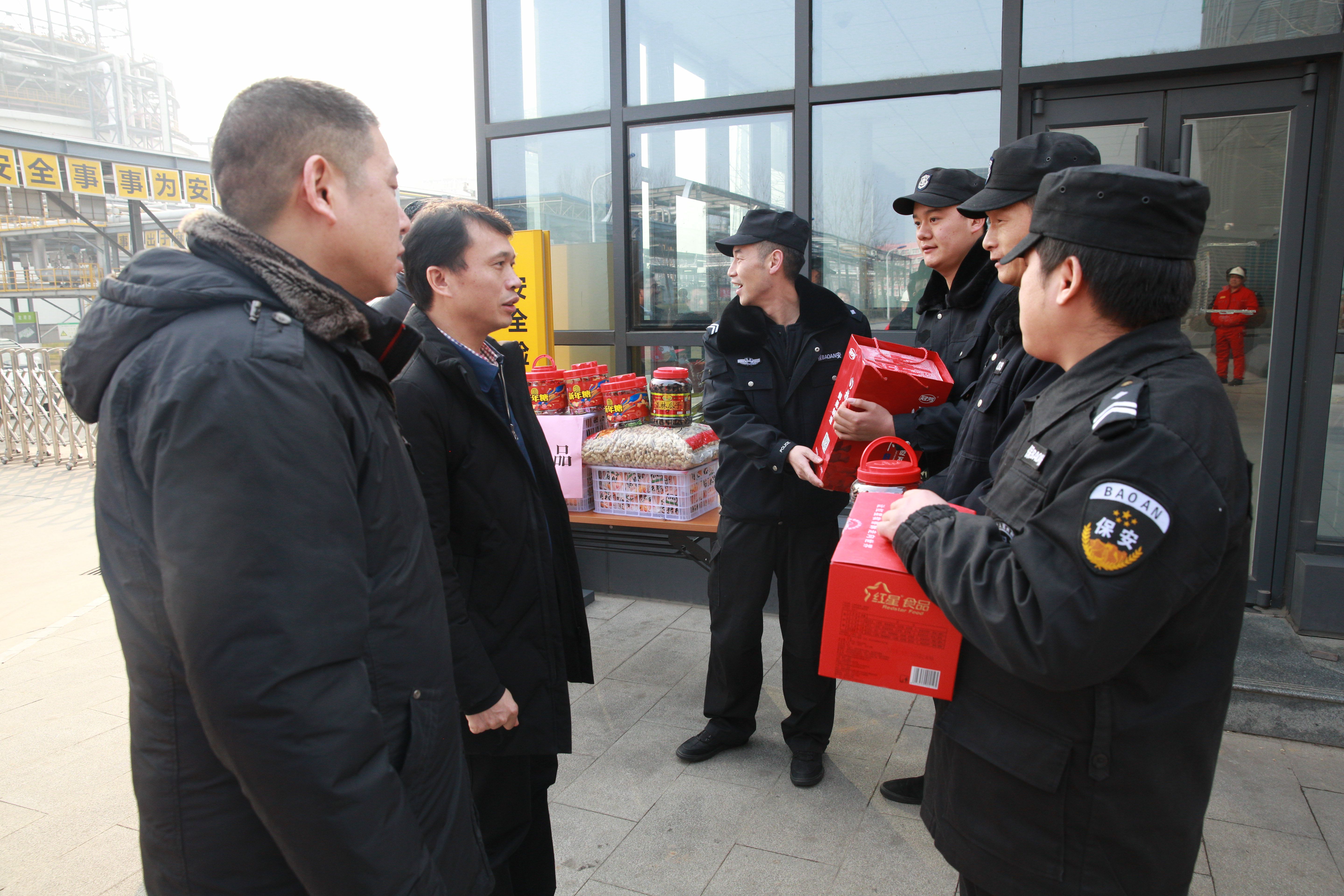 1月22日,液化天然气公司党委书记、董事长毛宗学带领公司领导班子深入一线,对基层员工、专职消防队员及安保人员进行慰问,为他们送上慰问品及节日祝福。