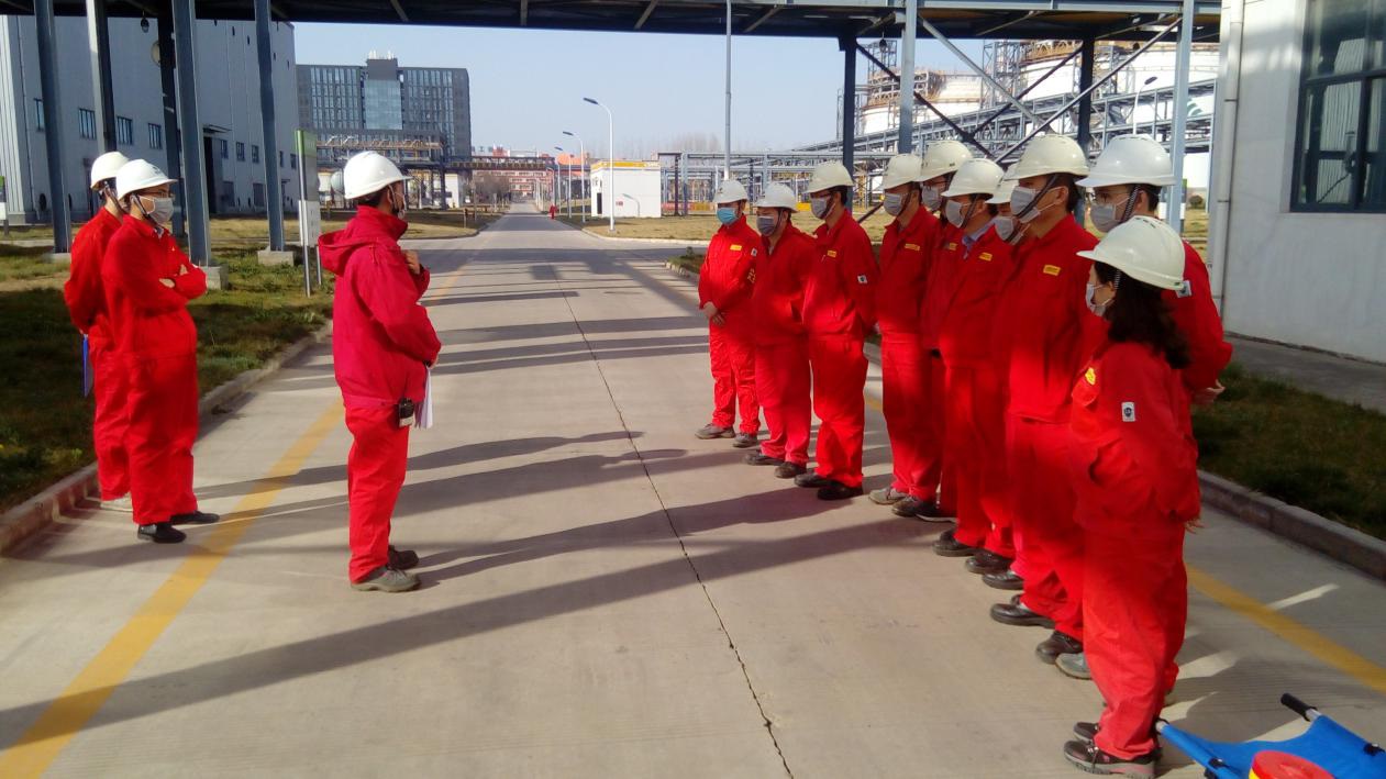 演练分为理论学习和模拟实践两大部分,其中模拟实践设工艺处理组、抢险救援组和警戒疏散组。本次演练真实还原了在生产中遇到突发事件的场景,并进行了有效的处理。