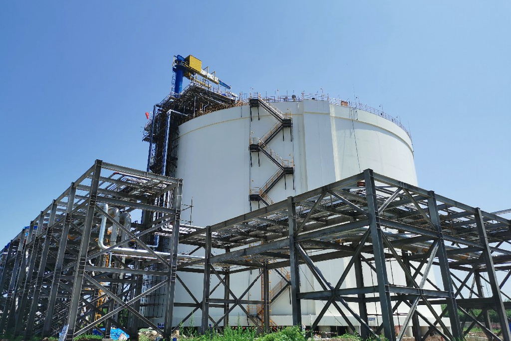 杨凌LNG项目扩能工程主要包括5万方储罐工程及配套的BOG压缩机厂房、管廊、火炬、配电室等工程,截至目前项目建设期手续办理完成,储罐主体工程机械竣工,罐内处于充氮保护状态,正在进行项目配套工程收尾工作。
