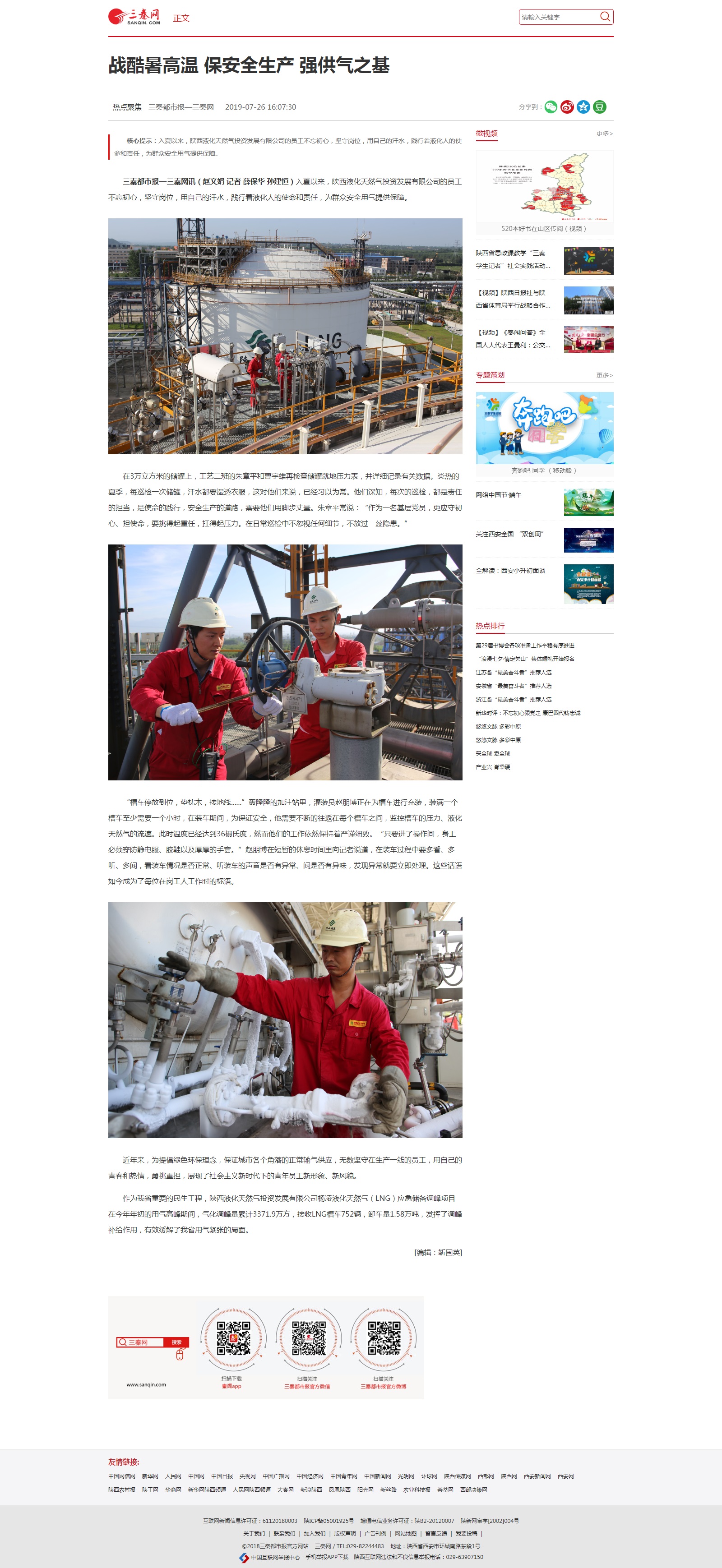 近日,三秦都市报—三秦网,陕西传媒网相继对液化天然气公司员工战酷暑高温,保安全生产,强供气之基进行了报道,和讯网进行了转载。现将相关内容摘录如下: